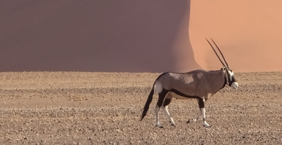 - 남부 아프리카에 서식하는 큰 영양인 겜스복은 최대 60km/h의 속도에 도달할 수 있습니다. 어깨높이 최대 145cm, 몸무게 최대 270kg 라고 합니다. 암수 모두 뿔이 있지만 수컷이 더 잘 발달되어 있으며 회색 몸에 검은 문신 모양의 무늬가 그려진 흰 머리를 가졌고 꼬리와 다리, 배 부분이 검은색 입니다. 반사막지대 또는 사바나에 서식하며, 일부다처의 무리를 지어 생활합니다. 주식은 나뭇잎이지만 뿌리, 열매도 먹는 것으로 알려져 있습니다